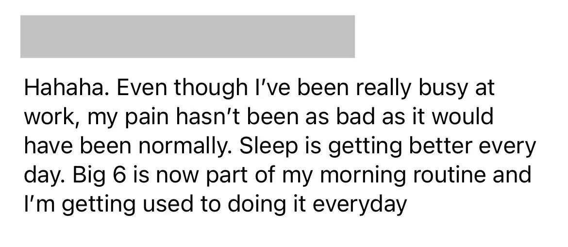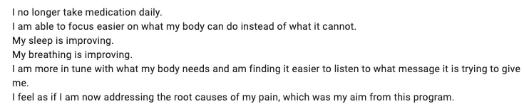 This programme is most effective for those who are committed to showing up for themselves, engaging with the material, and consistently putting in the effort. 97% of participants have experienced a significant reduction in pain, and 82% no longer needed pain medications. Your results will directly reflect the effort you put in, as the programme is designed to create lasting lifestyle changes.